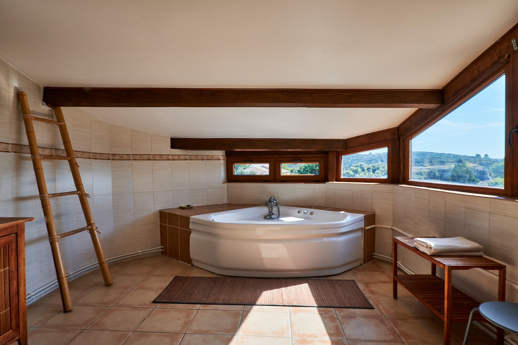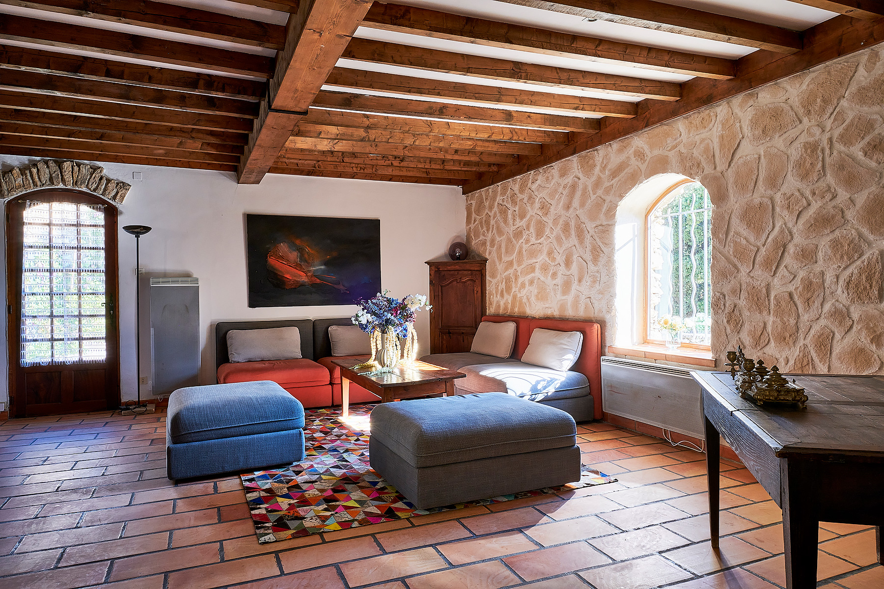 Profitez d’une grande piscine privée, entourée d’un jardin fleuri et ensoleillé, sans vis-à-vis. La propriété, située dans un environnement calme et naturel, est adossée à la colline, sur un vaste terrain privatif, offrant intimité et tranquillité.